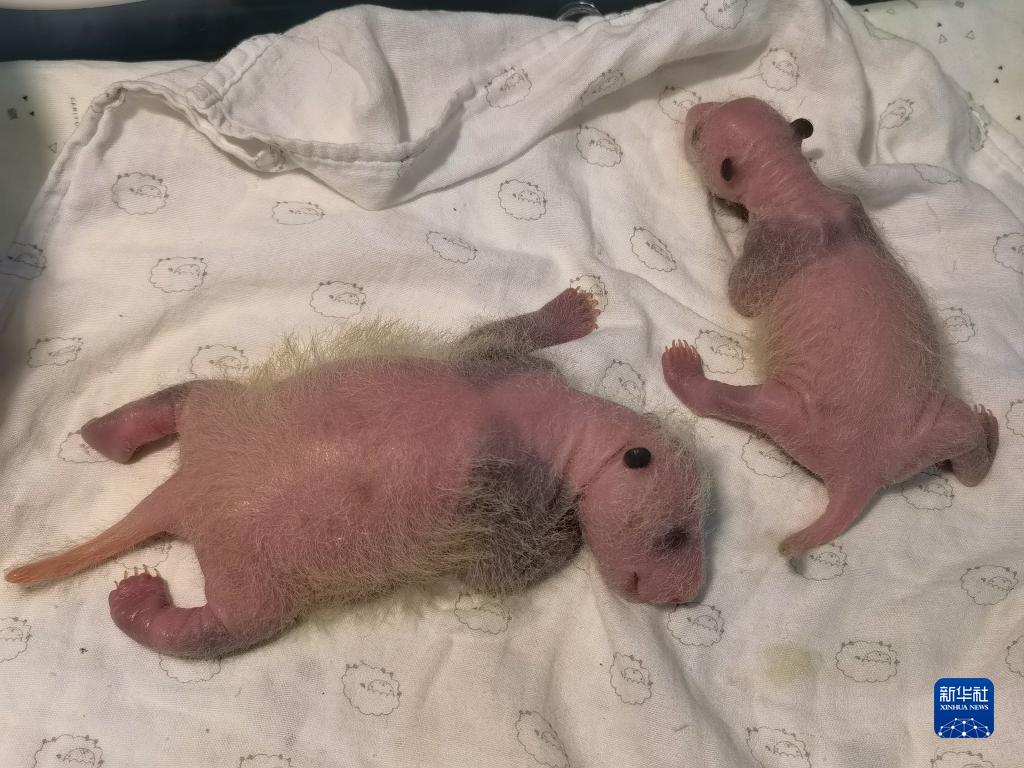 這是8月4日拍攝的海歸大熊貓“二順”產(chǎn)下的大熊貓雙胞胎幼仔。新華社發(fā)(重慶動(dòng)物園供圖)