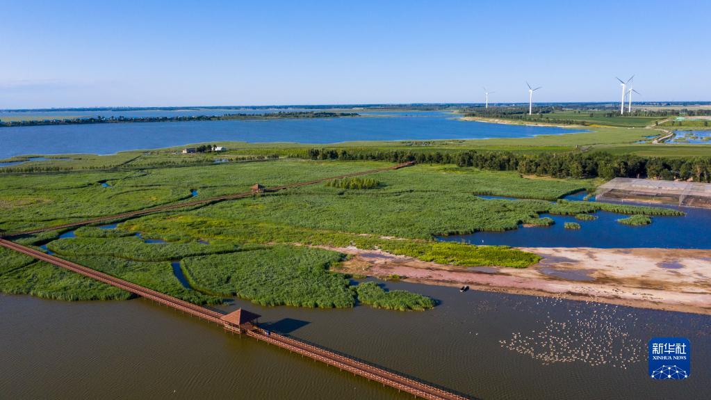 這是查干湖濕地(2020年7月20日攝,無(wú)人機(jī)照片)。新華社記者 張楠 攝