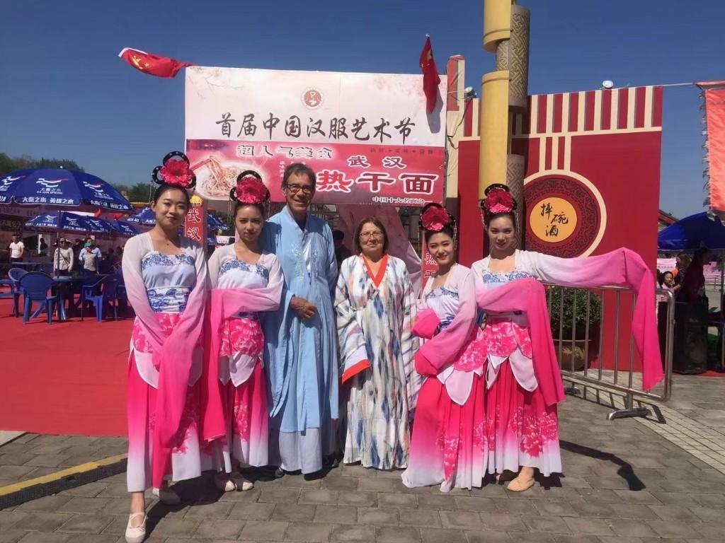 米羅夫婦身著漢服在樓觀生態(tài)文化旅游度假區(qū)游玩 受訪(fǎng)者供圖