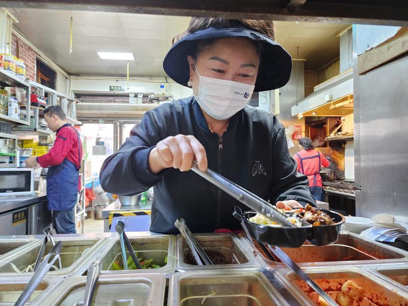 盡管9月23日參加韓國駐西安總領(lǐng)事館舉辦的韓國國慶日招待會(huì)很晚才回去,第二天一大早,文美卿仍如往常一樣來到自己在西安綠地中央廣場(chǎng)韓國風(fēng)情街經(jīng)營的明東碳烤韓國料理店。“最近我們剛開展外賣業(yè)務(wù),我來幫著做一些餐食包裝和準(zhǔn)備工作。”文美卿說。