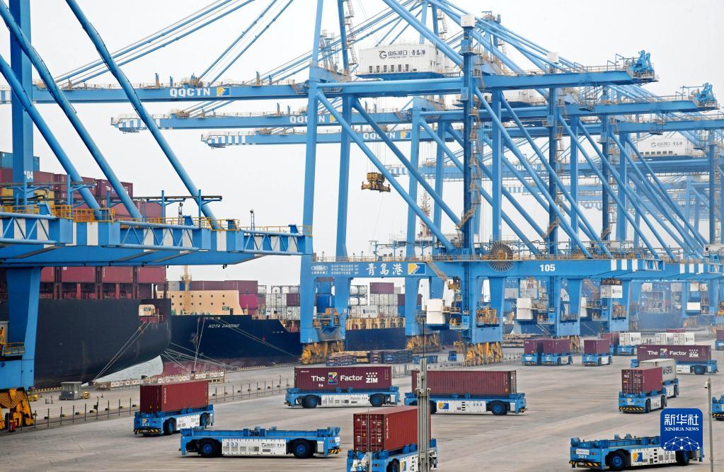 作業(yè)中的山東港口青島港全自動化集裝箱碼頭(10月16日攝)。新華社記者 李紫恒 攝