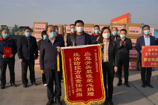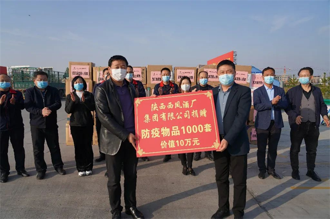 儀式上,西鳳集團公司向鳳翔區(qū)新冠疫情工作領(lǐng)導小組捐贈了價值10萬元的防疫物資1000套。