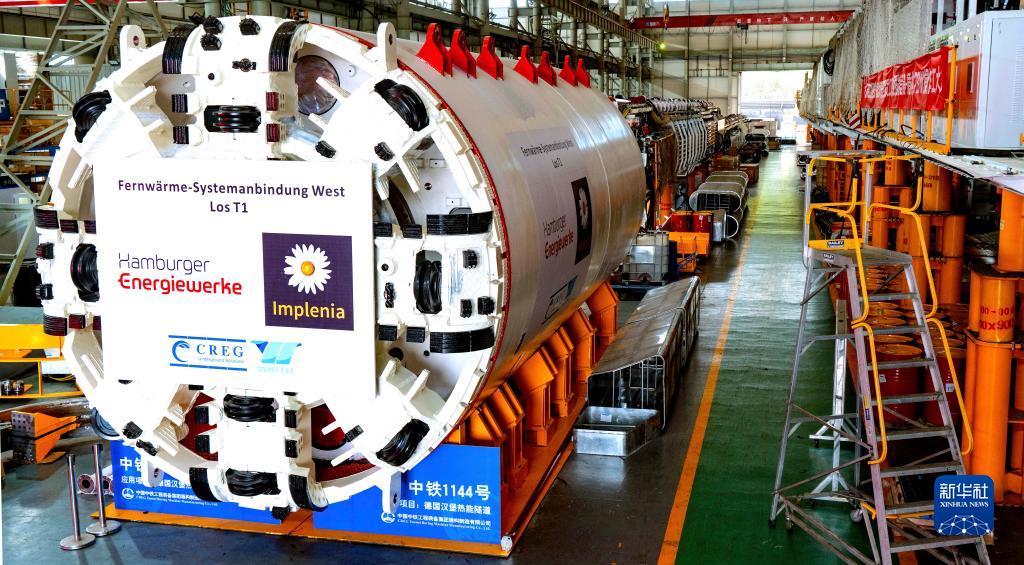 這是10月16日在河南鄭州拍攝的中鐵裝備首臺(tái)出口德國(guó)的盾構(gòu)機(jī)。新華社發(fā)