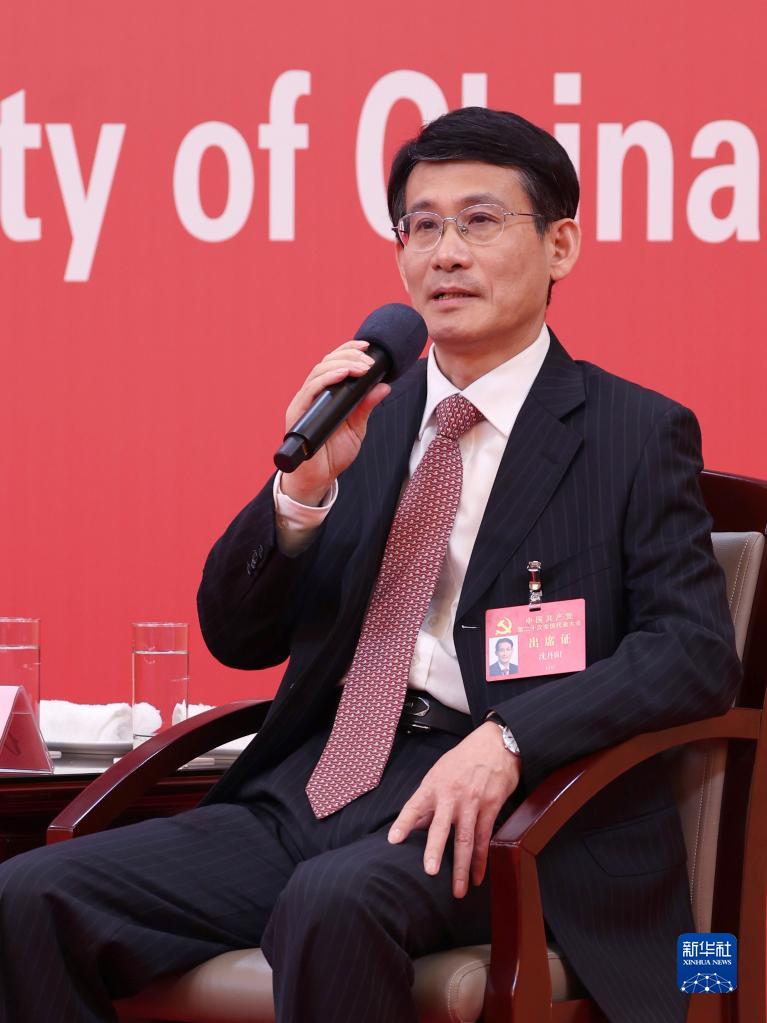 這是湖南省委常委、宣傳部部長楊浩東在回答記者提問。新華社記者 張玉薇 攝