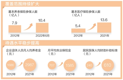 截至2022年6月,基本養(yǎng)老保險參保人數(shù)達到10.4億人;基本醫(yī)療保險參保人數(shù)2021年底已達13.6億人,覆蓋率穩(wěn)定在95%以上……更公平、更可靠、可持續(xù)的社會保障體系,托舉起人民群眾穩(wěn)穩(wěn)的幸福。