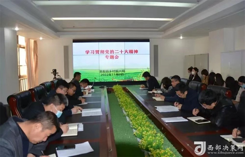 ( 西部決策網(wǎng)訊 齊春梅)11月7日,吳起縣鄉(xiāng)村振興局召開會(huì)議專題傳達(dá)學(xué)習(xí)黨的二十大精神,安排部署學(xué)習(xí)貫徹意見,局長(zhǎng)王鑫主持,局全體領(lǐng)導(dǎo)干部參加會(huì)議。