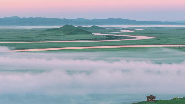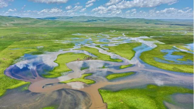 濕地河水充盈,草木豐美。時(shí)卷時(shí)舒的層云將陰影投在大自然鬼斧神工造就的草原上,成群的牛羊、鹿群以及盤旋高空的蒼鷹,還有珍稀動物