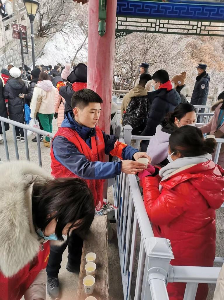 華山景區(qū)舉辦了“華山味·中國(guó)年‘冰雪+溫泉’福兔祈福華山過(guò)大年”新春迎賓系列活動(dòng),推出華山春節(jié)福兔祈福迎賓七大優(yōu)惠,為來(lái)華山的游客呈上一道旅游盛宴。華山腳下,最早的中國(guó)式搖滾——華陰老腔和華陰素鼓雙非物質(zhì)文化遺產(chǎn)表演,喜鬧新春。春節(jié)期間,華山景區(qū)客流大增,大年初三16:00,入園人數(shù)已接近景區(qū)最大日限流量1.5萬(wàn)人次,西峰和北峰索道上下站都排起了長(zhǎng)龍。當(dāng)天氣溫突降,景區(qū)工作人員貼心地熬煮了熱氣騰騰的紅棗姜湯送到游客手中,游客紛紛贊嘆:“太暖心了。”
