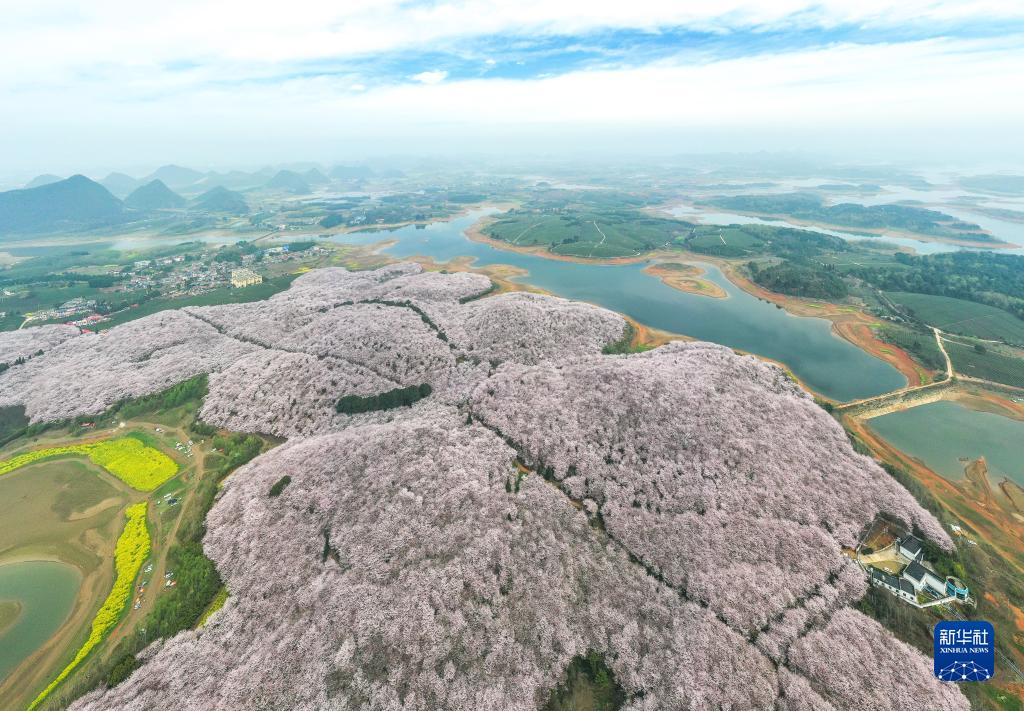 這是3月21日拍攝的貴州省貴安新區(qū)櫻花園(無人機(jī)照片)。新華社記者 楊文斌 攝