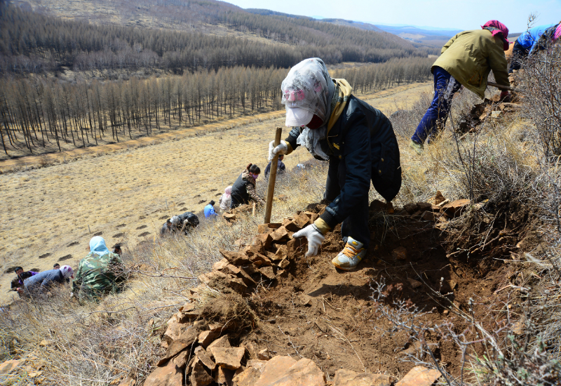塞罕壩石質(zhì)山地造林(塞罕壩機(jī)械林場(chǎng)供圖)