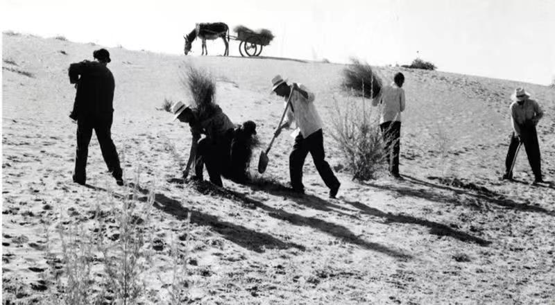八步沙第一代治沙人在八步沙上壓沙時(shí)的場(chǎng)景(八步沙林場(chǎng)供圖)