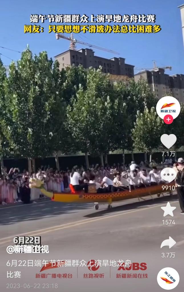 黃土高原的干旱土地里,“撐著走”的各類旱地龍舟賽,與江南水鄉(xiāng)一樣,充滿了氣勢(shì)與歡樂(lè),網(wǎng)友妙評(píng)說(shuō):“這些快樂(lè)里沒(méi)有一點(diǎn)水分!”