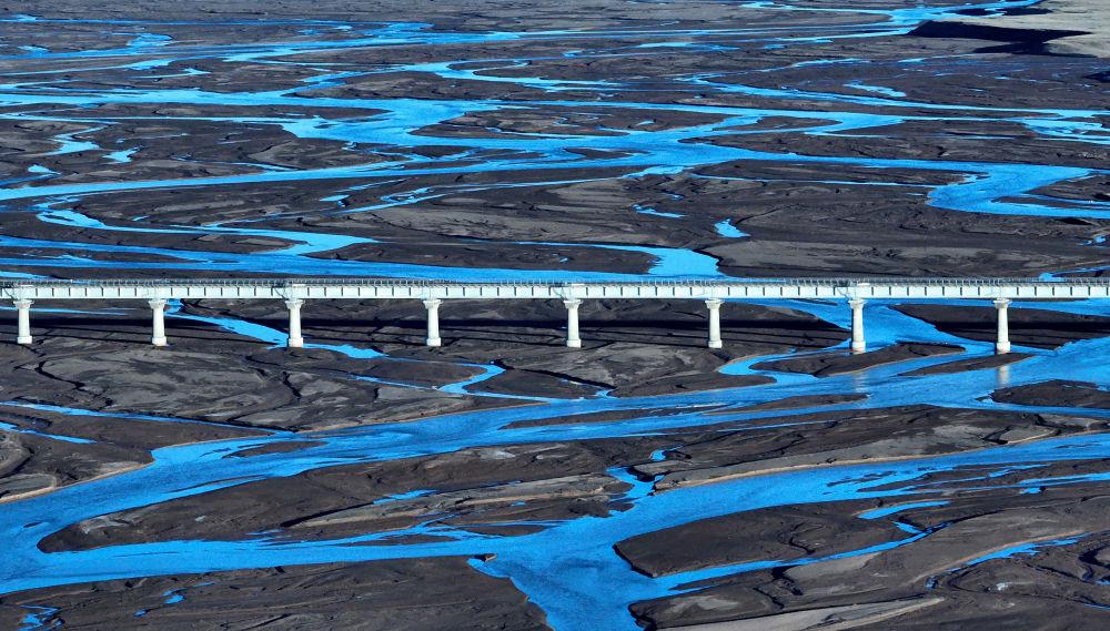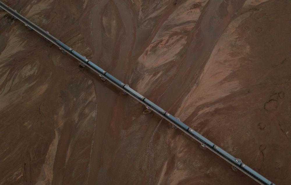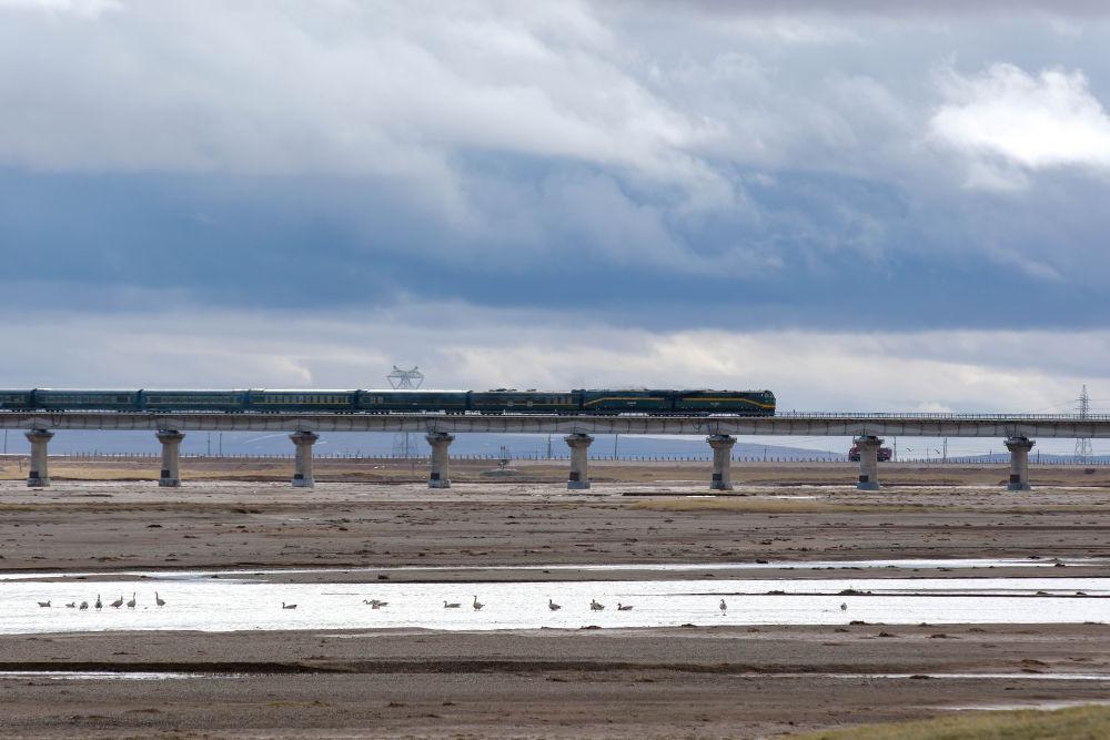6月16日,一列火車(chē)經(jīng)過(guò)長(zhǎng)江源地區(qū)的楚瑪爾河。