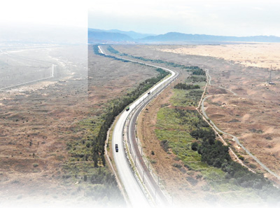 治沙防護(hù)體系守護(hù)包蘭鐵路平穩(wěn)運(yùn)行。 |