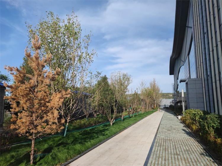 本次景觀提升工程主要對職工餐廳、文體中心北側(cè)的破損場地進(jìn)行了破除,對地平進(jìn)行修整后,重新種植了白皮松、叢生五角楓、白蠟、紅瑞木、水蠟等苗木。在留出人行通道的基礎(chǔ)上,設(shè)計了塑膠跑道,其余部分鋪設(shè)了草坪,并對區(qū)域圍墻進(jìn)行了修護(hù)??紤]到職工鍛煉休閑的實(shí)際需求,本次景觀提升工程還新安裝了一座公共廁所,設(shè)置了專門的吸煙區(qū)。