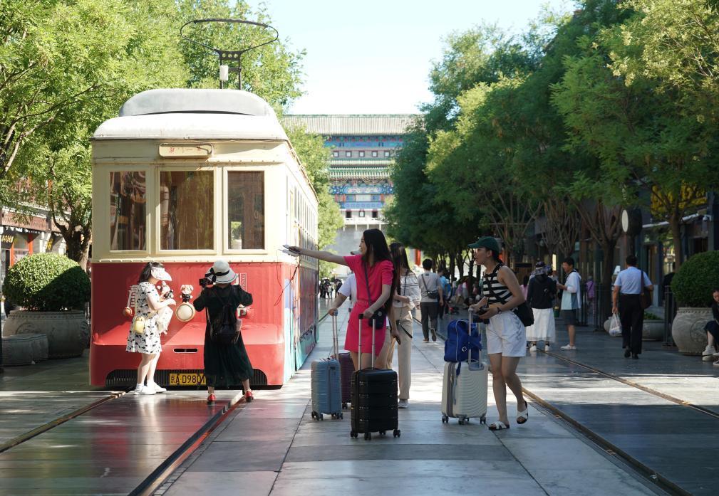 7月9日,人們?cè)谇伴T(mén)大街參觀游覽。新華社記者 任超 攝