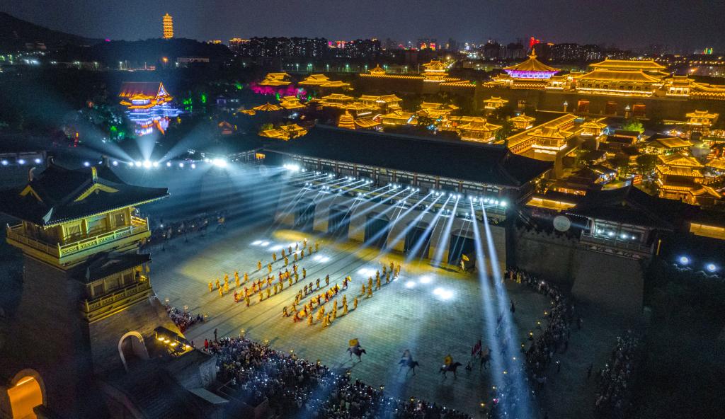 演員們在襄陽盛世唐城景區(qū)表演。(楊東 攝)
