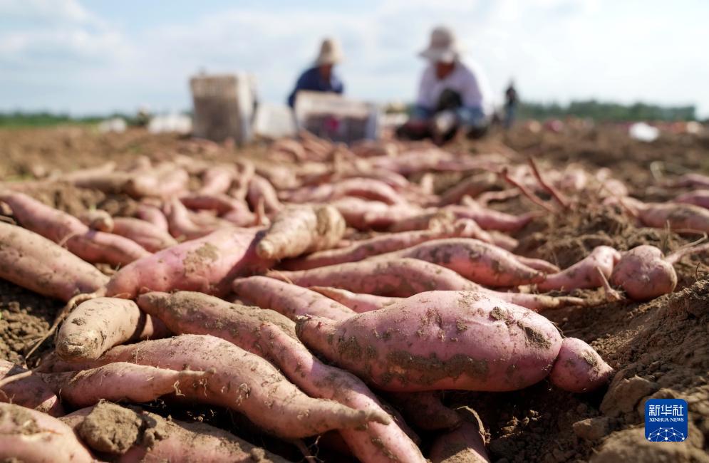 8月28日,灤州市九百戶鎮(zhèn)一家鮮食紅薯種植合作社的社員在田間收獲煙薯。