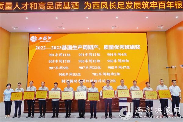 會上,張周虎宣讀了《關于對2022—2023基酒生產(chǎn)周期產(chǎn)質(zhì)量勞動競賽獲獎車間、班組進行表彰獎勵的決定》。與會領導為受表彰的獲獎車間、班組頒發(fā)獎牌。