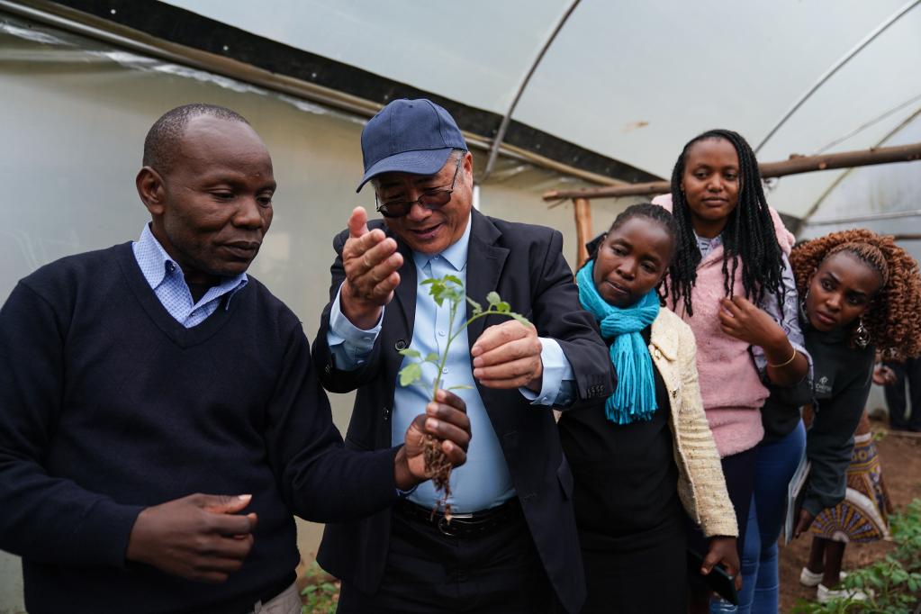9月18日,在肯尼亞納庫魯郡馬坦吉提薩村,來自中國的農(nóng)學(xué)教授劉高瓊(左二)為肯方學(xué)員指導(dǎo)農(nóng)業(yè)技術(shù)。(新華社記者韓旭攝)