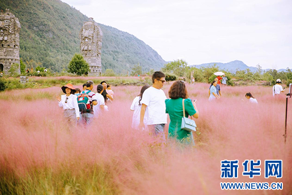 疊石花谷粉黛季拉開帷幕,微風(fēng)拂過,輕柔的粉黛花穗隨風(fēng)搖曳,充滿浪漫氣息,與疊石景觀相映成趣,令人流連忘返。景區(qū)在花海中設(shè)置了文案路牌、云朵氣球、尋夢秋千等多組網(wǎng)紅打卡裝置,為廣大游客提供花海打卡點,樂享秋日夢幻和浪漫,留下旅行的美好回憶。