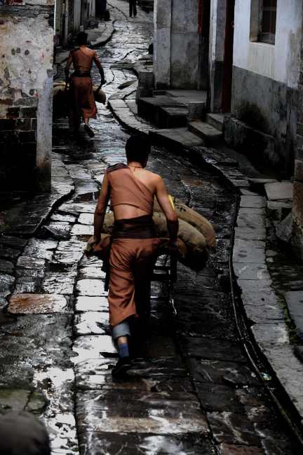 湖北赤壁羊樓洞古鎮(zhèn)是萬(wàn)里茶道的重要生產(chǎn)加工集散中心。生產(chǎn)的磚茶就是沿著彎曲的石板路,用獨(dú)輪雞公車(chē)銷(xiāo)往世界各地。