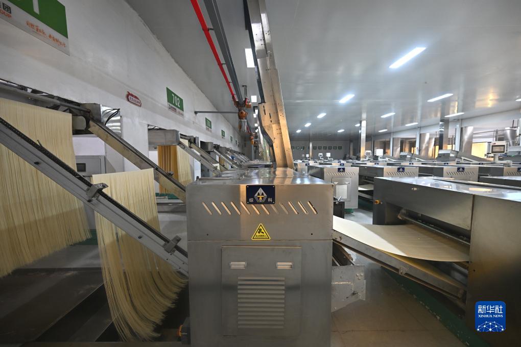 這是阿拉山口綜合保稅區(qū)內(nèi)的金沙河面業(yè)有限責(zé)任公司的面條生產(chǎn)車間(11月5日攝)。新華社記者 趙晨捷 攝