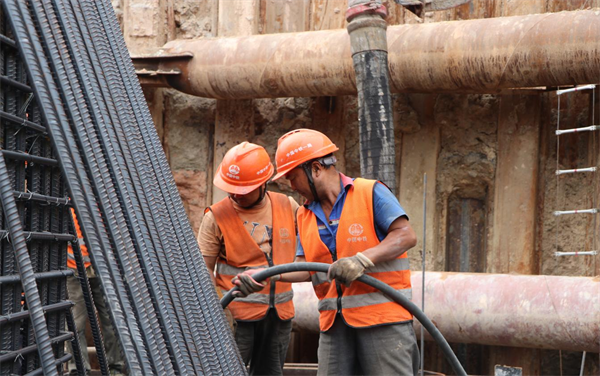 為確保本次混凝土澆筑施工安全順利完成,項目部集中組織現(xiàn)場管理人員和協(xié)作隊伍,對施工方案進(jìn)行詳細(xì)討論、學(xué)習(xí),總結(jié)前期施工經(jīng)驗,完善各工序銜接,對人員配置及分工進(jìn)行精細(xì)化部署,細(xì)化節(jié)點(diǎn)目標(biāo),明確責(zé)任。澆筑過程中,嚴(yán)格控制混凝土入模速度,緊盯混凝土振搗質(zhì)量,專人盯控,確保了61#主墩承臺的安全順利澆筑。