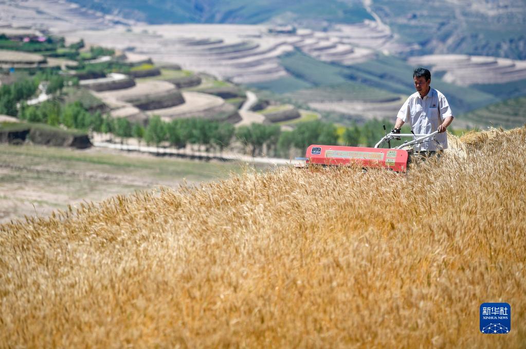 近日,寧夏西海固地區(qū)種植的冬小麥陸續(xù)進入收割季節(jié)。旱塬、梯田上一片金黃,農(nóng)民操作著收割機械在其中忙碌。據(jù)了解,今年固原市夏糧面積42.89萬畝,其中冬小麥36.04萬畝。