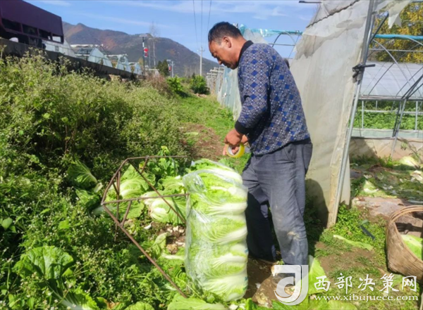 大棚內(nèi)西紅柿和白菜長(zhǎng)勢(shì)喜人,一大早,村民們陸續(xù)來(lái)到大棚中,采摘、裝筐、搬運(yùn),到處洋溢著豐收的喜悅。