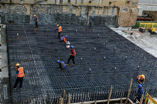 盾構(gòu)井臨時(shí)封堵板鋼筋綁扎完成做混凝土澆筑前的最后檢查