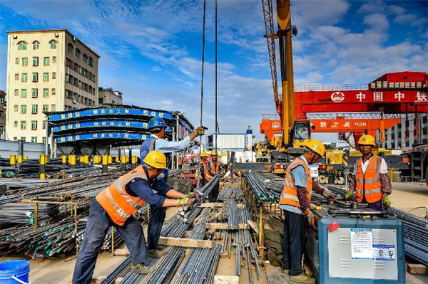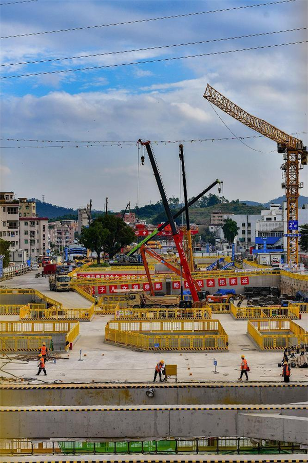 據(jù)項(xiàng)目部常務(wù)副經(jīng)理吳躍華介紹,白坭坑站目前投入電動抓斗3臺、長臂挖掘機(jī)1臺,短臂挖機(jī)6臺、25噸汽車起重機(jī)3臺,100噸汽車起重機(jī)1臺、塔吊2臺、土方運(yùn)輸車40臺,各工種作業(yè)人員400人。日平均出土量約2000立方米、綁扎制作鋼筋45噸。