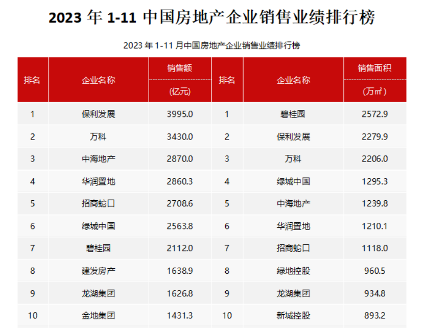 從企業(yè)表現(xiàn)來(lái)看,央國(guó)企銷售表現(xiàn)仍較為強(qiáng)勁。2023年1-11月,銷售額同比增長(zhǎng)超過(guò)10%的大型企業(yè)為,中海、華潤(rùn)、建發(fā)、越秀、華發(fā)、聯(lián)發(fā)、國(guó)貿(mào)地產(chǎn)、中建壹品、中建東孚、象嶼地產(chǎn)等,這些企業(yè)銷售增長(zhǎng)較為強(qiáng)勁。