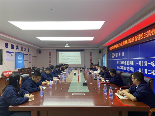 12月5日,中鐵一局一公司副總經(jīng)理李勇到佛山片區(qū)項(xiàng)目調(diào)研,并為黨員講授主題教育專題黨課。公司人力資源部(黨委干部部、黨委組織部)副部長(zhǎng)伍妮妮,佛山片區(qū)項(xiàng)目領(lǐng)導(dǎo)班子、全體黨員共計(jì)30余人參加。