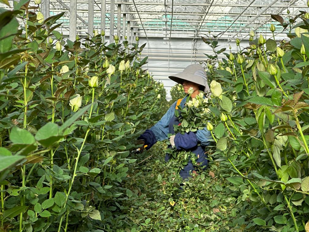 脫去厚重的外套,張小紅換上輕便的工作服,戴好手套和帽子,拿起大剪刀,開(kāi)始了一天的剪花工作。只見(jiàn)她走進(jìn)幽深窄密的綠色長(zhǎng)廊,直到看不見(jiàn)人影。少許時(shí)刻,她便抱著一大捧玫瑰走了出來(lái),新鮮的露水從嬌嫩的花瓣上滴落。平板車(chē)?yán)锸M清水,她和其他工人們一起,將新鮮采摘的玫瑰用網(wǎng)紗細(xì)心地裹好,然后放置水中。再過(guò)不久,這些玫瑰將被運(yùn)往全國(guó)各地甚至海外,為人們帶來(lái)愉悅和享受。