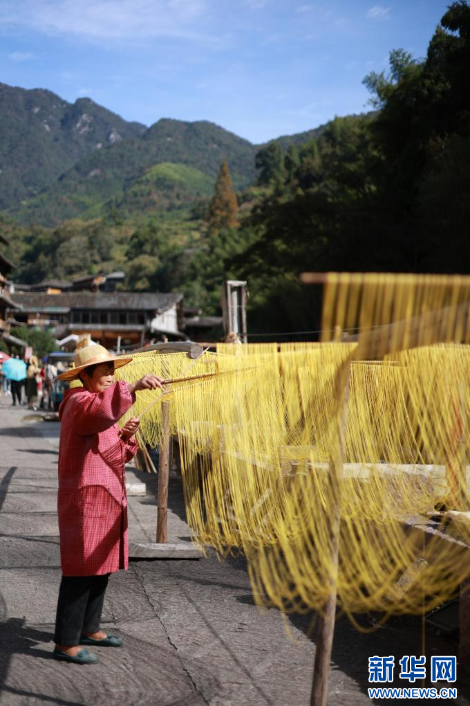 永嘉縣巖坦鎮(zhèn)林坑村“曬秋”場景。新華網(wǎng)發(fā)