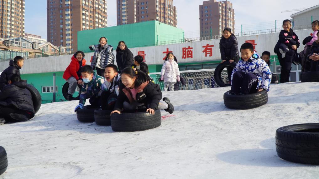 2023年12月31日,沈陽市渾南區(qū)第九小學(xué)學(xué)生在玩雪。(學(xué)校供圖)