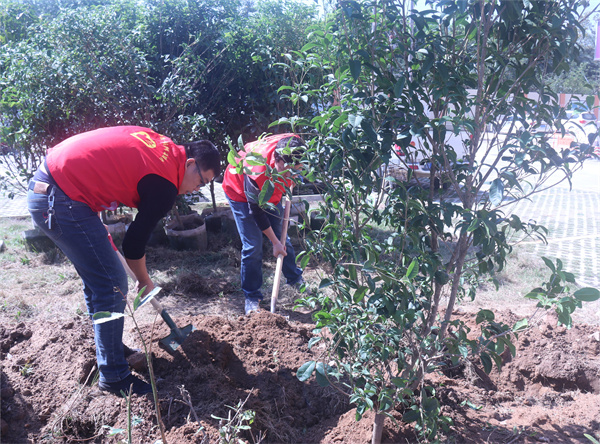 活動(dòng)中,大家分工明確,互幫互助,用自己的勞動(dòng)詮釋著對(duì)大自然生命的關(guān)愛,并在相互配合中享受著一片綠色的春意。