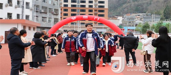 最后,全體學(xué)生跨過寓意著跨越夢想、邁向成功的“夢想門”“成功門”,大家深知,只有付出辛勤的努力和汗水,才能跨越這道門檻,實現(xiàn)自己的夢想。