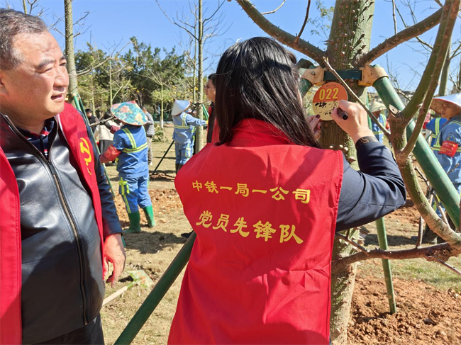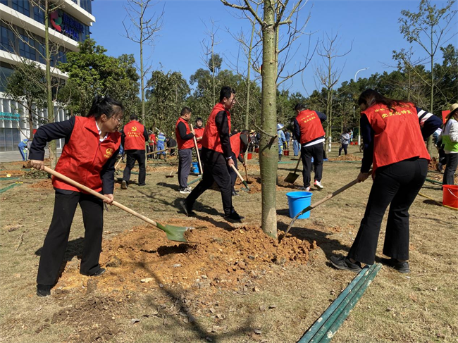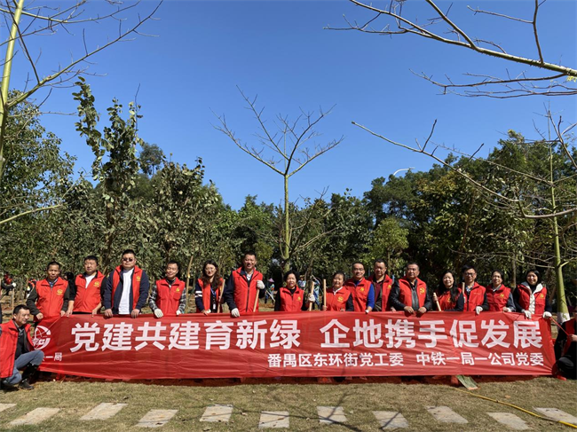 中鐵一局一公司黨委副書記、紀委書記朱懷勇帶隊,公司本部和番禺區(qū)在建項目的13名黨員代表參加了本次活動,他們統(tǒng)一著裝,手持鐵鍬、水桶等勞動工具,沐浴春日暖陽,滿懷熱情希望,認領了10棵象征著堅韌、勇氣、智慧和興旺的銀杏和香樟,栽種下中鐵一局一公司在廣東番禺屬地化發(fā)展的夢想和希望。