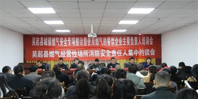 3月14日,吳起縣城管局聯(lián)合商務(wù)局、市場(chǎng)監(jiān)督管理局、公安局和消防大隊(duì)共同舉辦城鎮(zhèn)燃?xì)獍踩珜m?xiàng)整治暨使用燃?xì)獠惋嬈髽I(yè)培訓(xùn)會(huì),縣城所有餐飲企業(yè)和7小類用氣企業(yè)負(fù)責(zé)人參加培訓(xùn)。