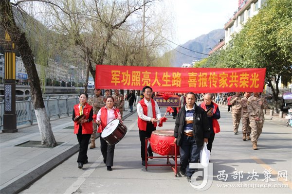 “喜報見證的是軍人至高無上的榮譽,大張旗鼓地開展送喜報活動,決不讓軍人的成績和榮譽只停留在檔案袋里,在更大范圍彰顯‘榮譽感’、擴大‘感召圈’,用實際行動使關心國防、熱愛國防、建設國防、保衛(wèi)國防成為全社會的思想共識和自覺行動。”鎮(zhèn)巴縣退役軍人事務局負責人鏗鏘有力的發(fā)言贏得了廣大軍民雷鳴般的掌聲。