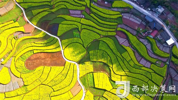 西部決策網(wǎng)訊 三月中旬,花紅柳綠,春雨綿綿。一腳踏進鎮(zhèn)巴簡池鎮(zhèn)李塘村,心都醉了。千畝田園油菜花進盛花期,站在高處遠望,金黃燦爛、層層疊疊的油菜花田依山傍水,清香撲鼻,美不勝收,與連綿的青山、清澈的河水、蜿蜒的公路、穿梭來往的游客、漂亮的民居、春耕的村民等交相輝映,構成一幅美麗的鄉(xiāng)村振興“調色板”和春日鄉(xiāng)村畫卷。
