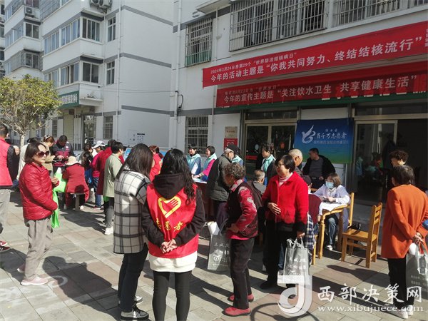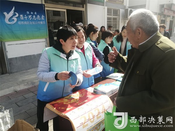 深入開(kāi)展肺結(jié)核防治知識(shí)進(jìn)社區(qū)活動(dòng)。3月24日,縣衛(wèi)健局、疾控中心、縣人民醫(yī)院、縣紫柏衛(wèi)生院聯(lián)合在城關(guān)社區(qū)開(kāi)展了結(jié)核病和飲水安全宣傳活動(dòng)?;顒?dòng)期間,醫(yī)務(wù)人員為群眾免費(fèi)測(cè)量血壓、開(kāi)展義診咨詢,現(xiàn)場(chǎng)志愿者從結(jié)核病的傳播途徑、防控措施及國(guó)家的優(yōu)惠政策方面,對(duì)前來(lái)咨詢的群眾進(jìn)行了詳細(xì)的解答,為來(lái)往居民介紹了結(jié)核病、飲水安全小知識(shí)。活動(dòng)當(dāng)天,共計(jì)發(fā)放肺結(jié)核宣傳年畫200余張,宣傳冊(cè)、宣傳彩頁(yè)共計(jì)10余種500余份,圍裙、手提袋300余個(gè),為群眾提供咨詢服務(wù)100余人次。